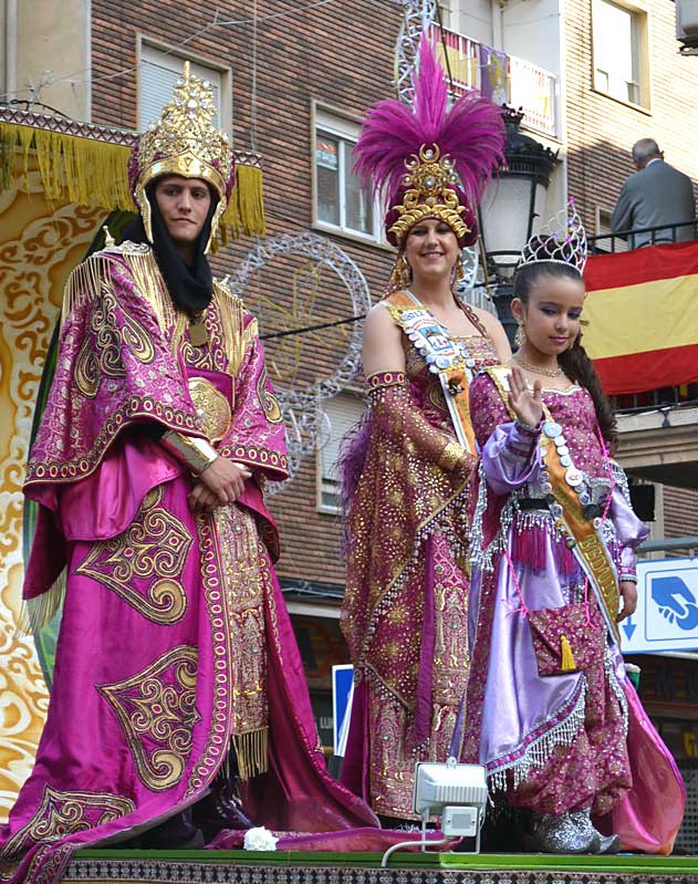 Supone la entrada triunfal de las huestes del bando moro, siendo un alarde de trajes en los que los participantes lucen sus mejores atuendos; intervienen gran variedad de escuadras a pié personajes a caballo, armas e instrumentos de guerra, boatos, bandas de música, carrozas. etc.